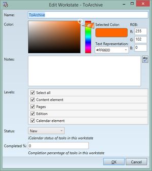 1.In the Description field definition in editWorkstate objectUI, defined in the EdAdmin4_Config.xml configuration file, add a new content highlighted below (respect the characters case): <attribute name="description"> <ui mode="Normal" label="Notes"> <template kind="MultiLineString" useSpellChecker="yes" xmlns="http://www.teradp.com/schemas/GN4/1/XmlSchemaExt.xsd"> <objectUI> <web maxRows="4"/> </objectUI> </template> </ui> </attribute> 2.Save changes and import them in database as explained in TASK: Save changes and import them in database. 3.Close and run again EdAdmin4 and reopen the Edit workstate dialog box as explained in TASK: Get to know the Workstate entry dialog and recognize its fields. 4.Notice the changes in the dialog box: now, the Description field is now named Notes. As you can clearly see, after you added the label property with an appropriate value, it overrides the default naming, and it acts only on the current dialog box. Conclusions It is rather simple to change the naming on one dialog box. What if you need to do it on all dialog boxes? Then, it is better to do it by changing the default naming convention, defined in the string files, described in the Modifying Strings chapter. Note: if you are tempted to use a global find and replace, resist to the temptation - for many terms, there are too many different places they are used that is it rather difficult to make sure you will not break the files! More reading |