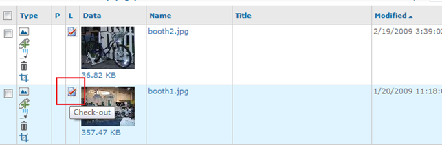 It is possible to check-out and check-in objects directly from the Web interface, using the check-out icon in the listings: